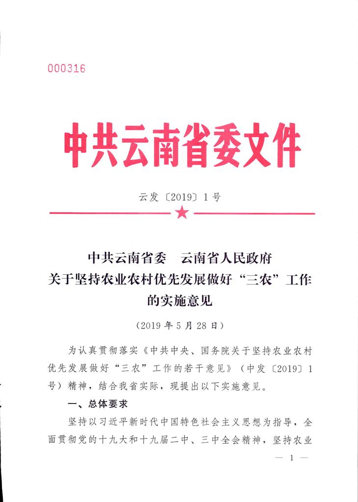 云南省委省政府关于坚持农业农村优先发展做好“三农”工作的实施意见
