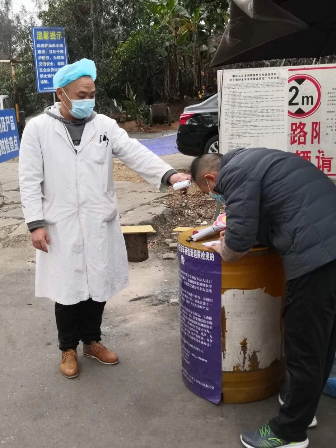 当新型冠状病毒肺炎疫情在全国蔓延开来,为积极配合攀枝花市西区卫健局关于新型冠状病毒肺炎预防的工作部署,职工医院决定抽调出4名医务人员支援格里坪镇卫生院的抗击疫情工作,在公路出口卡点对下高速公路和省道进攀的车辆和人员进行排查工作。