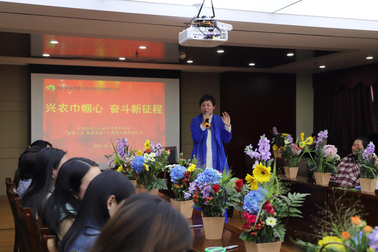 3月4日,兴农公司开展了以“兴农巾帼心 奋斗新征程”为主题的“三八”妇女节活动。兴农公司女职工在花愈师的带领下,享受了插花艺术心理疗愈沙龙体验。此次心理理疗驱散了女职工们的工作疲惫,增进了同事间的感情,极大地增强了公司的凝聚力和向心力。(董敏)