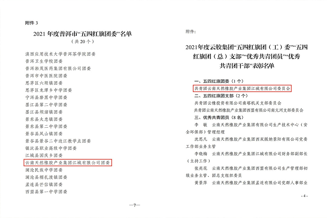 在中国共青团成立100周年之际,共青团普洱市委发布表彰决定,授予20个团委2021年度普洱市“五四红旗团委”荣誉称号,江城公司团委名列其中。