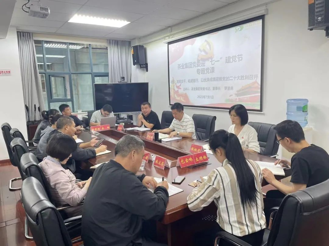 茶业集团党委书记、董事长罗恩勇为党员上党课,带领大家回顾党的百年奋斗历程取得的重大成就,分析当前经济环境和茶业集团发展的状态,并从毫不动摇坚持和加强党的全面领导,深入践行以人民为中心的发展思想,深刻学习领会新时代党的创新理论,坚持以新发展理念引领高质量发展等方面要求大家真抓实干,砥砺前行。